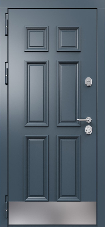 Дверь стальная МДФ эмаль №563 — это удачное сочетание надежной металлической основы и аккуратной декоративной отделки. Каркас из профильной трубы и стальной лист толщиной 2 мм обеспечивают прочность и устойчивость к взлому, а ребра жесткости повышают общий ресурс эксплуатации. Важной особенностью модели является наличие терморазрыва в коробке и полотне: конструкция эффективно препятствует промерзанию зимой, исключает появление конденсата и сохраняет тепло в помещении. Панели МДФ с ПВХ-покрытием, использованные с обеих сторон, защищены от влаги и мелких механических повреждений, благодаря чему дверь долго сохраняет привлекательный внешний вид. Два контура резинового уплотнителя дополнительно усиливают защиту от сквозняков и уличного шума. Такая дверь органично подходит для частных домов, квартир и офисов, сочетая в себе надежность стали и практичность современной отделки. Дверь стальная МДФ эмаль №563 от производителя: быстрое изготовление и монтаж в Ильинском, индивидуальные размеры, широкий выбор материалов и фурнитуры, официальная гарантия до 10 лет.