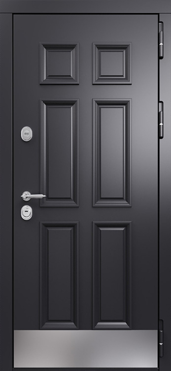 Входная дверь с МДФ №566 создана для тех, кто ценит прочность металла и уютный внешний вид в одном решении. Она одинаково хорошо вписывается в частный дом, квартиру или офис, подчеркивая солидность пространства и обеспечивая надежную защиту. Каркас и полотно собраны из профильных труб, усиленных ребрами жесткости, а стальной лист толщиной 2 мм гарантирует устойчивость к взлому и длительный срок службы. С обеих сторон дверь облицована МДФ панелями с ПВХ-покрытием, что делает поверхность более устойчивой к истиранию и мелким повреждениям, сохраняя привлекательность даже при интенсивной эксплуатации. Панели легко очищаются и не выгорают на солнце, благодаря чему дверь подходит и для уличной установки. Два контура уплотнения надежно защищают от сквозняков и посторонних запахов, а при необходимости можно дополнительно усилить конструкцию тепло- и шумоизоляцией. Модель №566 сочетает в себе сдержанный дизайн и функциональность, делая ее практичным выбором для самых разных помещений. Входная дверь с МДФ №566 от производителя: быстрое изготовление и монтаж в Ильинском, индивидуальные размеры, широкий выбор материалов и фурнитуры, официальная гарантия до 10 лет.