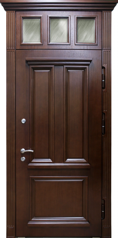 Дверь с сувальдным замком и фрамугой №34 идеально сочетает в себе стиль и надежность. Панель из натурального дерева, использованная как для внешней, так и для внутренней отделки, придает двери благородный и элегантный вид, делая её отличным выбором для помещений с классическим или современным интерьером. Каркас двери выполнен из профильной трубы 50х25 мм и усилен ребрами жесткости, что гарантирует прочность конструкции. Замки от производителей "Просам" и "Мосрентген" с тремя ригелями обеспечивают высокий уровень безопасности. Дверь оснащена уплотнителями с двумя контурами, что гарантирует отличную герметичность, а возможность замены замков и добавления кованых элементов делает её адаптируемой под любые требования. Кроме того, дверь можно дополнить зеркалом, стеклопакетом или видеодомофоном для еще большего комфорта. Входная дверь с сувальдным замком и фрамугой №34 от производителя: быстрое изготовление и монтаж в Ильинском, индивидуальные размеры, широкий выбор материалов и фурнитуры, официальная гарантия до 10 лет.