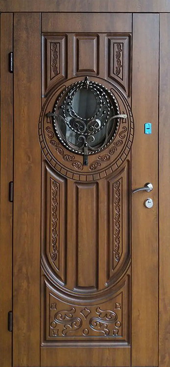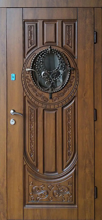 Владельцы коттеджей ценят входные конструкции, которые одинаково подчеркивают статус и защищают от любых внешних факторов. Здесь удачно сочетаются прочный металл и массив дуба, придающий поверхности солидность и благородство. Натуральное дерево сохраняет цвет и текстуру долгие годы, устойчиво к механическим повреждениям и перепадам температуры. Внутри конструкции скрыт стальной каркас толщиной 1,5 мм с ребрами жесткости и противосъёмными блокираторами, что делает полотно практически неприступным. Особое преимущество — терморазрыв коробки и полотна, благодаря которому дверь не промерзает даже в сильные морозы и сохраняет тепло в доме. Именно на этом контрасте надежности и эстетики выделяется железная дверь со стеклом и ковкой №21, украшенная изящными декоративными элементами. Три контура магнитного уплотнения обеспечивают герметичность, а система замков Kale Kilit повышает уровень безопасности, при этом конструкция допускает установку современных умных решений и дополнительных декоративных опций. Железная дверь со стеклом и ковкой №21 от производителя: быстрое изготовление и монтаж в Ильинском, индивидуальные размеры, широкий выбор материалов и фурнитуры, официальная гарантия до 10 лет.