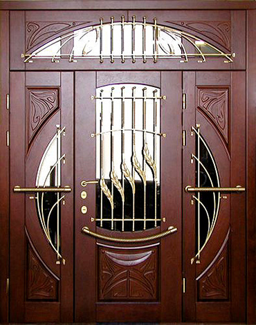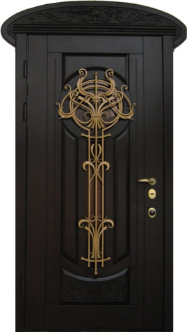 Входная металлическая дверь для частного дома со стеклом и ковкой №29