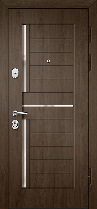 Глубокий оттенок венге всегда выглядит благородно и современно, а декоративная панель придаёт полотну завершённый стильный образ. Дверь МДФ цвета венге с внешней декоративной панелью №538 подходит для установки как в частных домах, так и в квартирах или офисах, где ценят сочетание надёжности и эстетики. Плиты МДФ отличаются прочностью, стойкостью к мелким механическим повреждениям и долго сохраняют первоначальный вид без потери насыщенности цвета. Конструкция выполнена на основе стального каркаса с листом металла толщиной 2 мм и рёбрами жёсткости, что обеспечивает высокий уровень прочности. Два контура уплотнения повышают комфорт эксплуатации, защищая от сквозняков. Дополнительно дверь можно оснастить шумо- и теплоизоляцией, зеркалом, стеклопакетом или коваными элементами, сделав её не только практичной, но и индивидуальной деталью интерьера. Дверь МДФ цвета венге с внешней декоративной панелью №538 от производителя: быстрое изготовление и монтаж в Ильинском, индивидуальные размеры, широкий выбор материалов и фурнитуры, официальная гарантия до 10 лет.