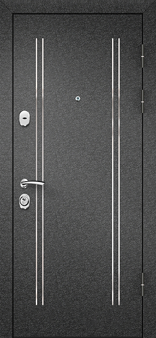 Дверь металлическая в порошке №59 — надежное решение для квартир, офисов и подъездов, где требуется прочная конструкция и аккуратный внешний вид. Снаружи используется молотковое напыление, которое не боится механических повреждений и долго сохраняет насыщенный цвет, а внутренняя поверхность отделана ламинатом, создающим ощущение уюта и подчеркивающим практичность модели. Каркас собран из профильной трубы 50х25 мм, усилен ребрами жесткости и листом стали толщиной 2 мм, что придает двери устойчивость к силовым нагрузкам. Дополнительную защиту обеспечивают два замка: верхний сувальдный «Просам» и нижний цилиндровый «Мосрентген», оба с тремя ригелями. Два контура резинового уплотнения помогают справляться со сквозняками, а при желании дверь можно укомплектовать шумо- и теплоизоляцией. Модель №59 легко адаптируется под любые требования: возможна комбинация отделок, установка зеркала, стеклопакета или декоративной ковки. Дверь металлическая в порошке №59 от производителя: быстрое изготовление и монтаж в Ильинском, индивидуальные размеры, широкий выбор материалов и фурнитуры, официальная гарантия до 10 лет.