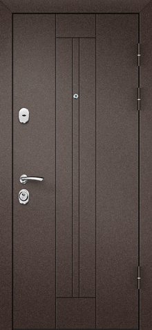Дверь входная металлическая термо №13 – это надежное решение для частного дома или коттеджа, где важна не только безопасность, но и сохранение тепла. Благодаря терморазрыву, который сделан как в коробке, так и в полотне, дверь эффективно защищает от холодных ветров и перепадов температуры, сохраняя комфорт внутри помещения. Внешняя отделка из МДФ с эффектом шпона и внутренняя накладка из того же материала придают двери современный и элегантный вид, а также делают её устойчивой к внешним воздействиям. Толщина металла 1,5 мм и усиленная конструкция с ребрами жёсткости из профильных труб обеспечивают долговечность и надежность. Тройной контур магнитного уплотнения и пенопласт повышенной плотности создают отличную шумо- и теплоизоляцию, делая эту дверь идеальной для использования в условиях изменчивого климата. Противосъёмные блокираторы добавляют дополнительную защиту. Дверь входная металлическая термо №13 от производителя: быстрое изготовление и монтаж в Ильинском, индивидуальные размеры, широкий выбор материалов и фурнитуры, официальная гарантия до 10 лет.