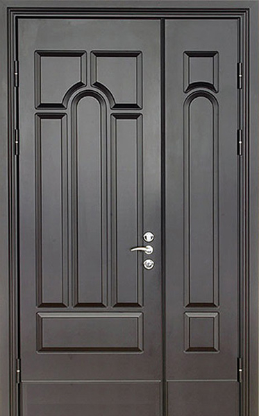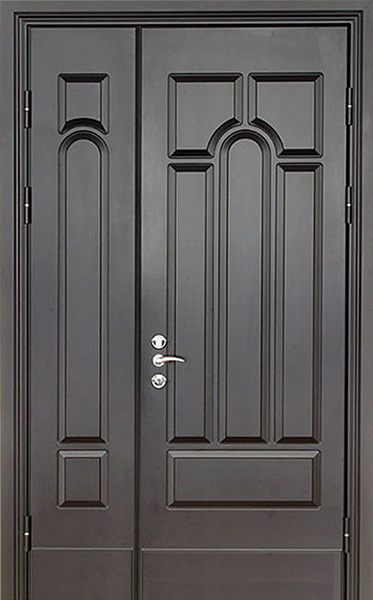 Металлическая двухстворчатая дверь для дома цвета графит №27 – это стильное и надежное решение для вашего жилья. Внешняя и внутренняя отделка выполнены из МДФ, что придает двери изысканный вид и увеличивает её стойкость к механическим повреждениям. Цвет графит придаёт двери современный и элегантный оттенок, который легко впишется в интерьер как частных домов, так и современных офисов. Металлическая двухстворчатая дверь для дома цвета графит №27 от производителя: быстрое изготовление и монтаж в Ильинском, индивидуальные размеры, широкий выбор материалов и фурнитуры, официальная гарантия до 10 лет.