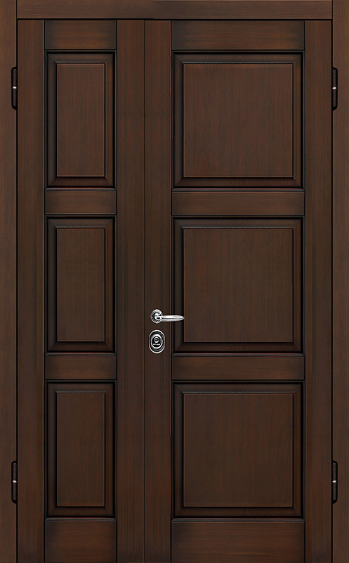 Двойная филенчатая дверь для загородного дома венге №7 сочетает в себе элегантность и прочность. Ее внешняя отделка выполнена из панелей МДФ с ПВХ, что придает двери современный вид, а также обеспечивает устойчивость к механическим повреждениям и долговечность. Каркас из профильной трубы 50х25 мм и полотно толщиной 2 мм гарантируют надежность и устойчивость к нагрузкам. Ребра жесткости из профильных труб 40х25 мм усиливают конструкцию, а уплотнение с двумя контурами защищает от проникновения влаги и пыли. Замки "Просам" и "Мосрентген" с тремя ригелями обеспечивают высокий уровень безопасности. В дверь можно добавить дополнительные элементы, такие как стеклопакет, зеркало или кованые детали, что позволяет адаптировать ее под любой интерьер. Терморазрывы в коробке и полотне способствуют лучшей теплоизоляции, обеспечивая комфорт в любое время года. Двойная филенчатая дверь для загородного дома венге №7 от производителя: быстрое изготовление и монтаж в Ильинском, индивидуальные размеры, широкий выбор материалов и фурнитуры, официальная гарантия до 10 лет.