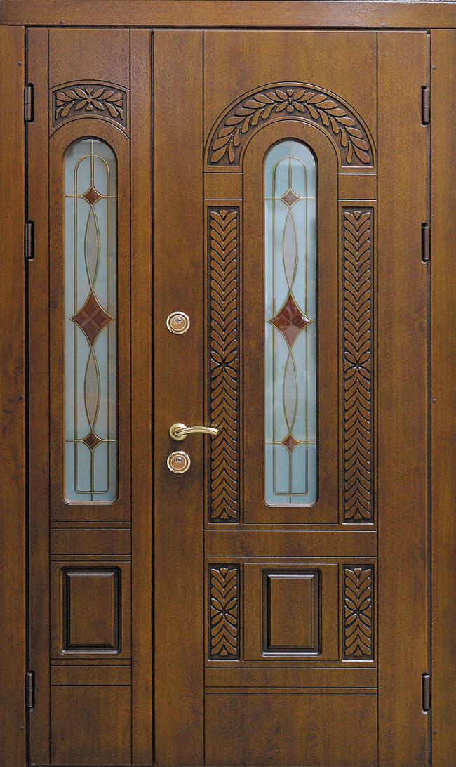 Арочная двустворчатая входная со стеклом дверь №32