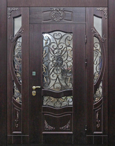 Натуральное дерево в отделке придает входной группе солидность и благородство, подчеркивая статус хозяев дома. Прочная основа из стальной профильной трубы с листом металла толщиной 2 мм и системой ребер жесткости гарантирует устойчивость и надежность конструкции даже при интенсивной эксплуатации. Входная дверь со стеклом №390 сочетает защитные качества стали и декоративность деревянных панелей, а вставка из стекла делает массивное полотно визуально легче и добавляет естественного света в интерьер. Для комфорта и практичности предусмотрены два контура уплотнителей, блокираторы и возможность выбора направления и типа открывания. Итальянские замки Cisa — цилиндровый и сувальдный — обеспечивают высокий уровень безопасности благодаря нескольким ригелям. Такая дверь подходит для коттеджей и загородных домов, где важна не только надежность, но и выразительный внешний вид парадного входа. Входная дверь в частный дом со стеклом №14 от производителя: быстрое изготовление и монтаж в Ильинском, индивидуальные размеры, широкий выбор материалов и фурнитуры, официальная гарантия до 10 лет.