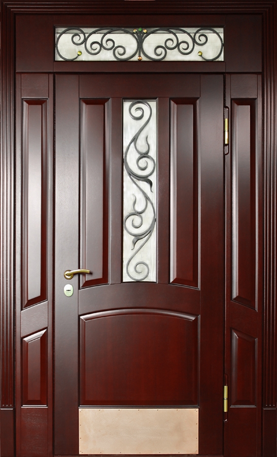 Красивая шпонированная дверь с надежной фурнитурой и ковкой "лоза" №33 идеально дополнит интерьер вашего частного дома или коттеджа. Внешняя и внутренняя отделка выполнены из натурального дерева, что придает двери элегантность и стиль. Профильная труба 50х25 мм используется для каркаса и полотна, а лист металла толщиной 2 мм и ребра жесткости из профильных труб 40х25 мм обеспечивают прочность и долговечность. Несмотря на отсутствие терморазрыва, дверь гарантирует надежную защиту и теплоизоляцию благодаря двум контурам уплотнения. Элементы ковки "лоза" придают двери особое очарование, сочетая практичность с эстетикой. Эта дверь — идеальный выбор для тех, кто ценит стиль, качество и безопасность. Красивая шпонированная дверь с надежной фурнитурой и ковкой "лоза" №33 от производителя: быстрое изготовление и монтаж в Ильинском, индивидуальные размеры, широкий выбор материалов и фурнитуры, официальная гарантия до 10 лет.